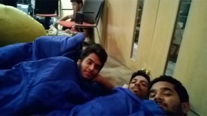 It was like 7 pm, finally we started designing UI, initially targeted for Windows Phone, same time Faheem was designing Android UI. Slowly covered the UI, and some basic stuff in like 4 hours. We had endless fun in between like squeezing into sleeping bag for ‘selfie’, fun in restroom for keeping us awake whole night.